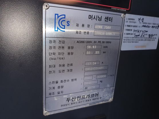 두산 MCT 7호기 머시닝센터 MYX-7500