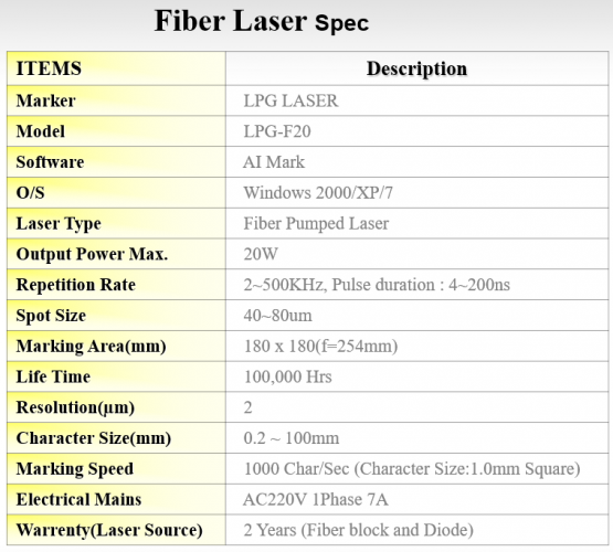 LPG Laser, 2013년, 20W, 핸드폰 마킹용도 사용