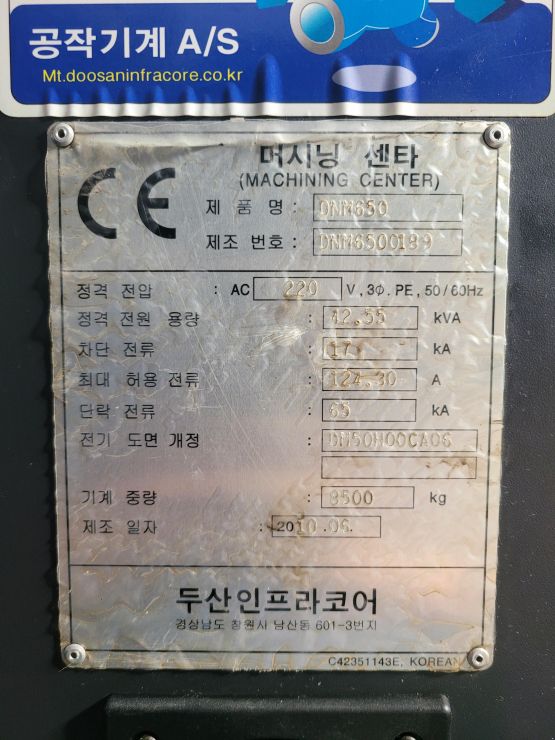 * DNM650, 6.5호기 머시닝센터