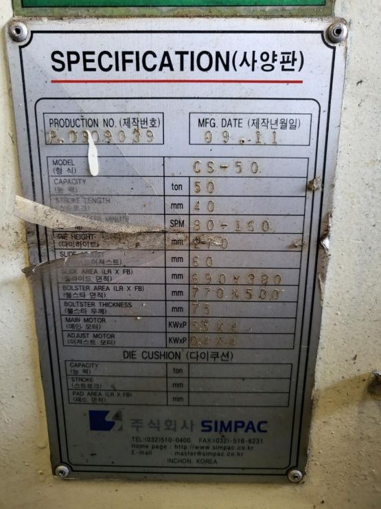 [판매완료] ''(주) 세광기계'' CS-50톤 심팩 프레스